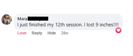 Most clients experience 2+ inches lost from the very first session. Continued visits will result in greater results and are recommended for those looking for a larger transformation.